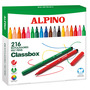 Classbox economy pack of 216 Alpino standard felt pens (3 mm fine tip). The ideal way to have the material organized in class. 12 colors x 18 units.