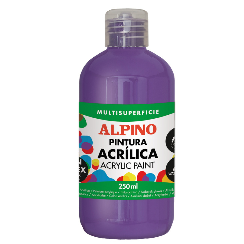 Acrylic paint ideal for decorating all kinds of surfaces such as paper, wood, cardboard ... It dissolves with water but once dry it is very resistant, varnish effect. 250 ml bottle in violet color, 12 units unicolor.