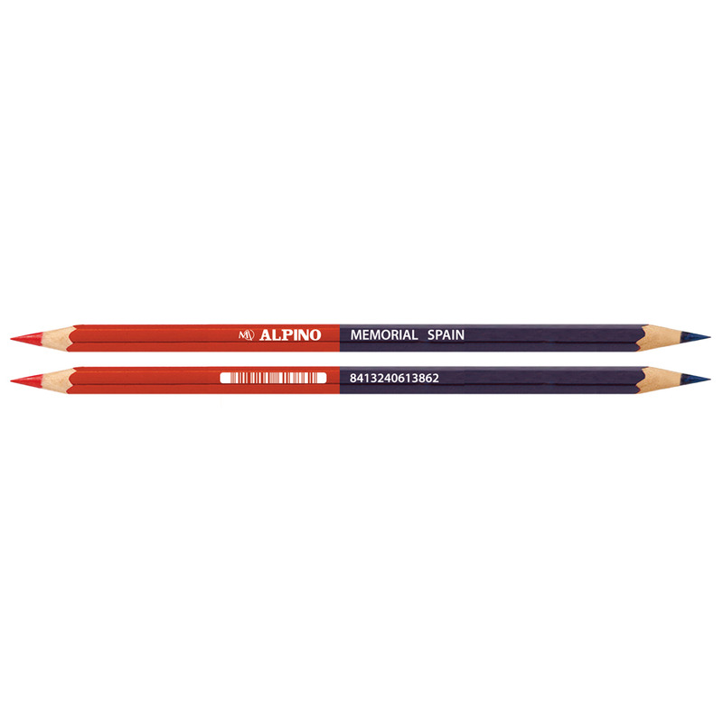 Box of 12 memorial pencils, two-color (red and blue). Ideal for marking or highlighting texts.