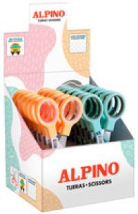 Tijeras escolares para zurdos: Tijeras enfocadas para su utilización en la edad escolar. Suelen tener la punta redondea y tener un tamaño aproximado de unos 120-130mm. Estas tijeras son para utilización de zurdos. Las tijeras Alpino para zurdos son la mejor elección ya su mango y hoja están colocados para realizar un corte preciso.